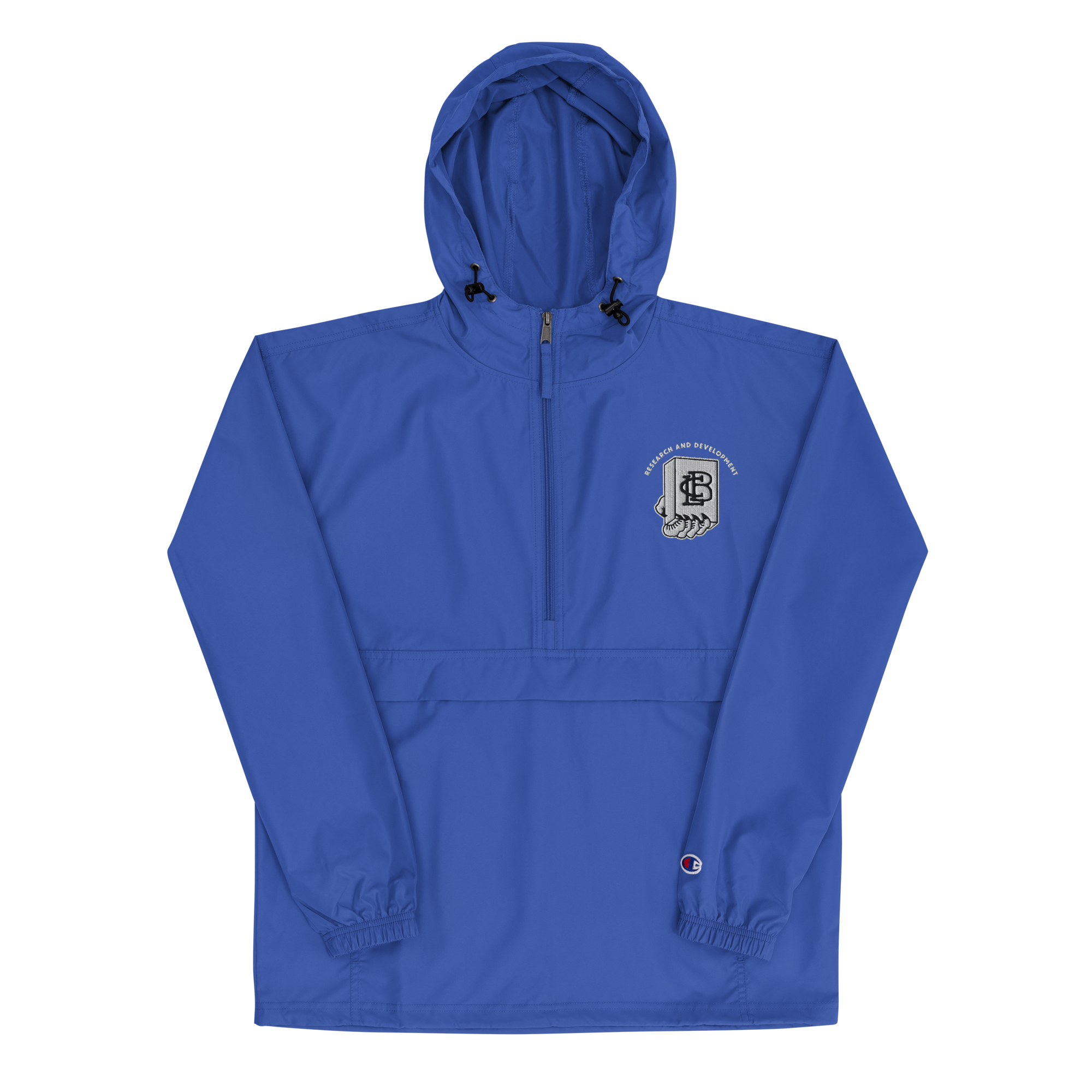 Protect yourself from the elements with this LBCovenant R&D jacket. This wind and rain resistant polyester Champion jacket with a detailed embroidery design has a practical hood, front kangaroo pocket, and zipped pouch pocket which you can pull out and use to scrunch the jacket into for convenient storage.